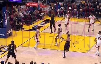 奥科吉底角发起突破,空中折叠闪躲过默里暴扣打成2+1